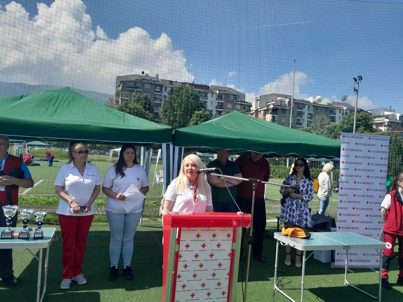 Пред присутните се обрати Генералниот секретар на Црвен крст на РСМ, г-дин Саит Саити кој истакна дека првата помош е една од најпретпознатливите активности на Црвениот крст и во таа насока Црвениот крст активностите ги насочува кон нејзино промовирање со цел подигнување на јавната свест за значењето и потребата од едукацијата и обука на заедницата за укажување прва помош како чин на хуманост, одговорност и спасувачка вештина, вклучувајќи ги и најмладите во воспитно-образовните институции.