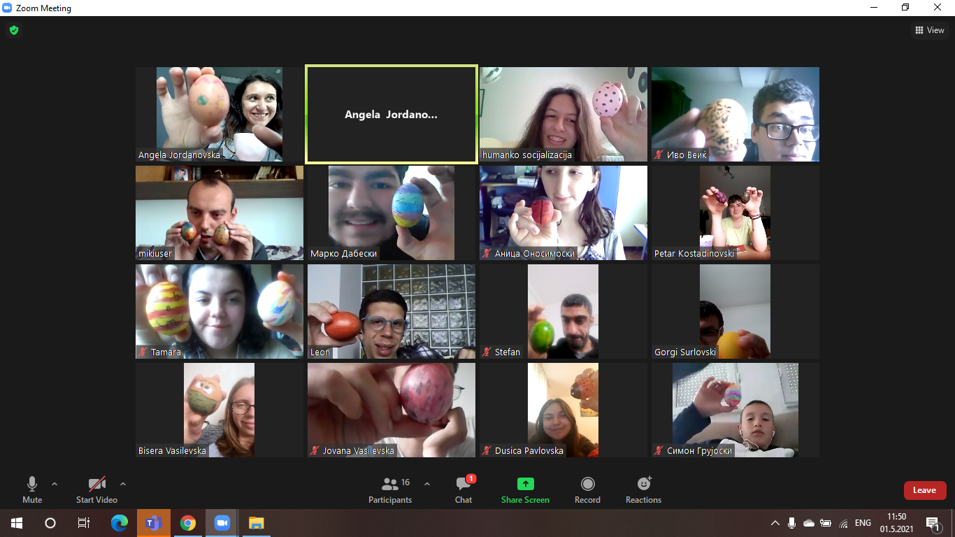 Активноста беше реализирана на платформата за на далечина ZOOM и на неа беа присутни 10 учесници од целната група, 2 родители на целната група, и 7 волонтери од Клубот на млади.