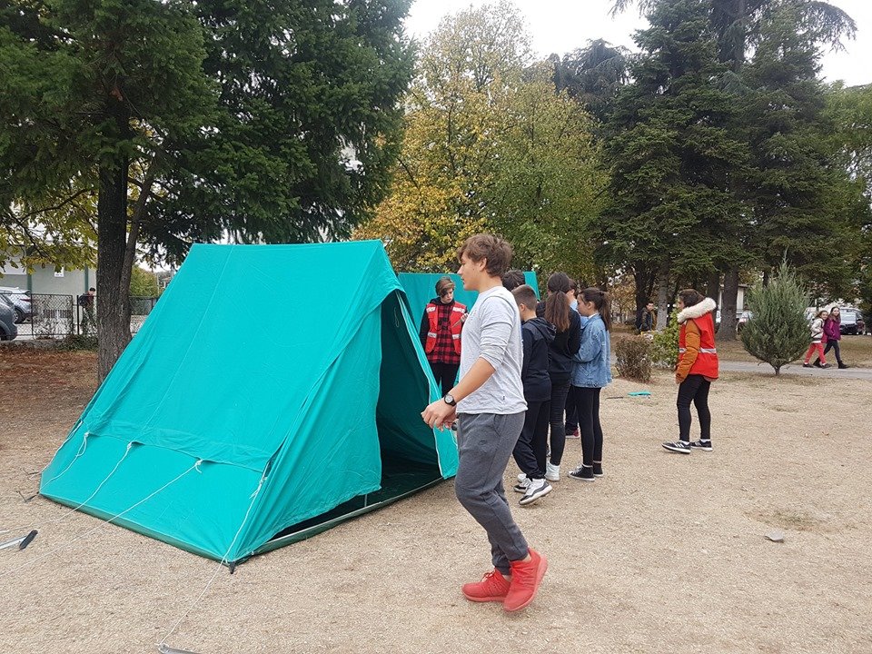 Учениците, членови на училишните клубови од ООУ ,,Ѓорче Петров”, ООУ ,,Мирче Ацев” и ПСУ ,,Максимилијан” имаа можност да ги надградат вештините за поставување на мали шатори.