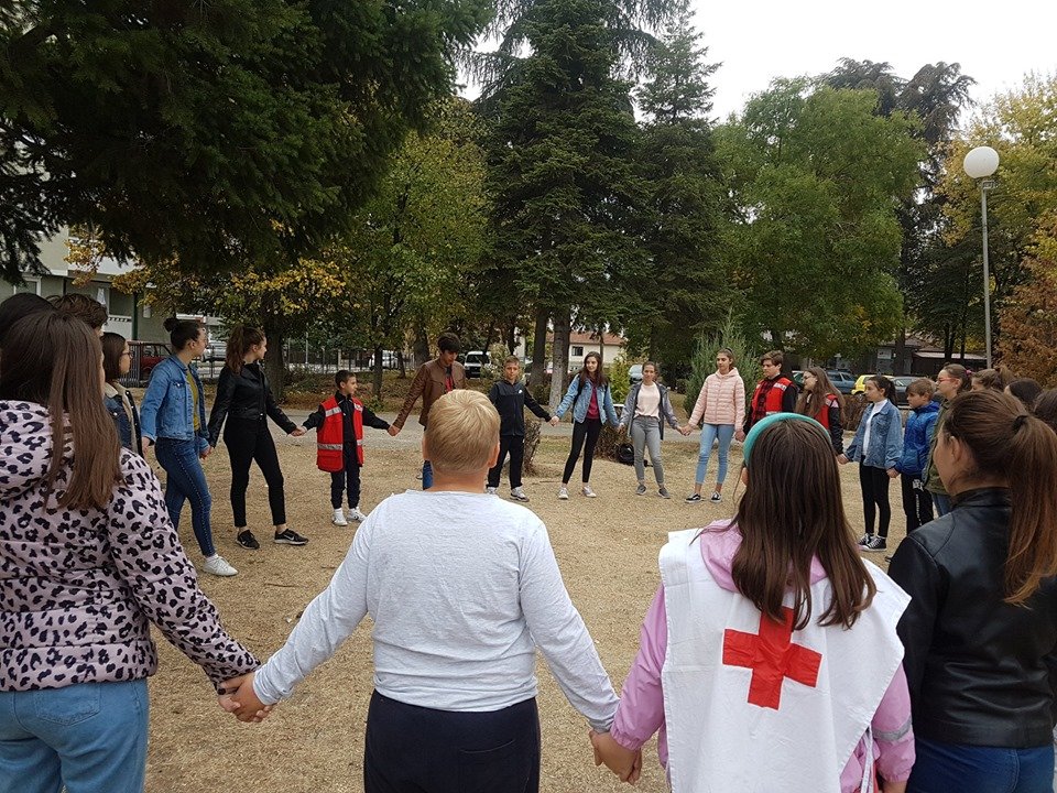 Вежбите се реализираа во присуство на волонтери од Клубот на млади на ЦКРМ – ОО Карпош.