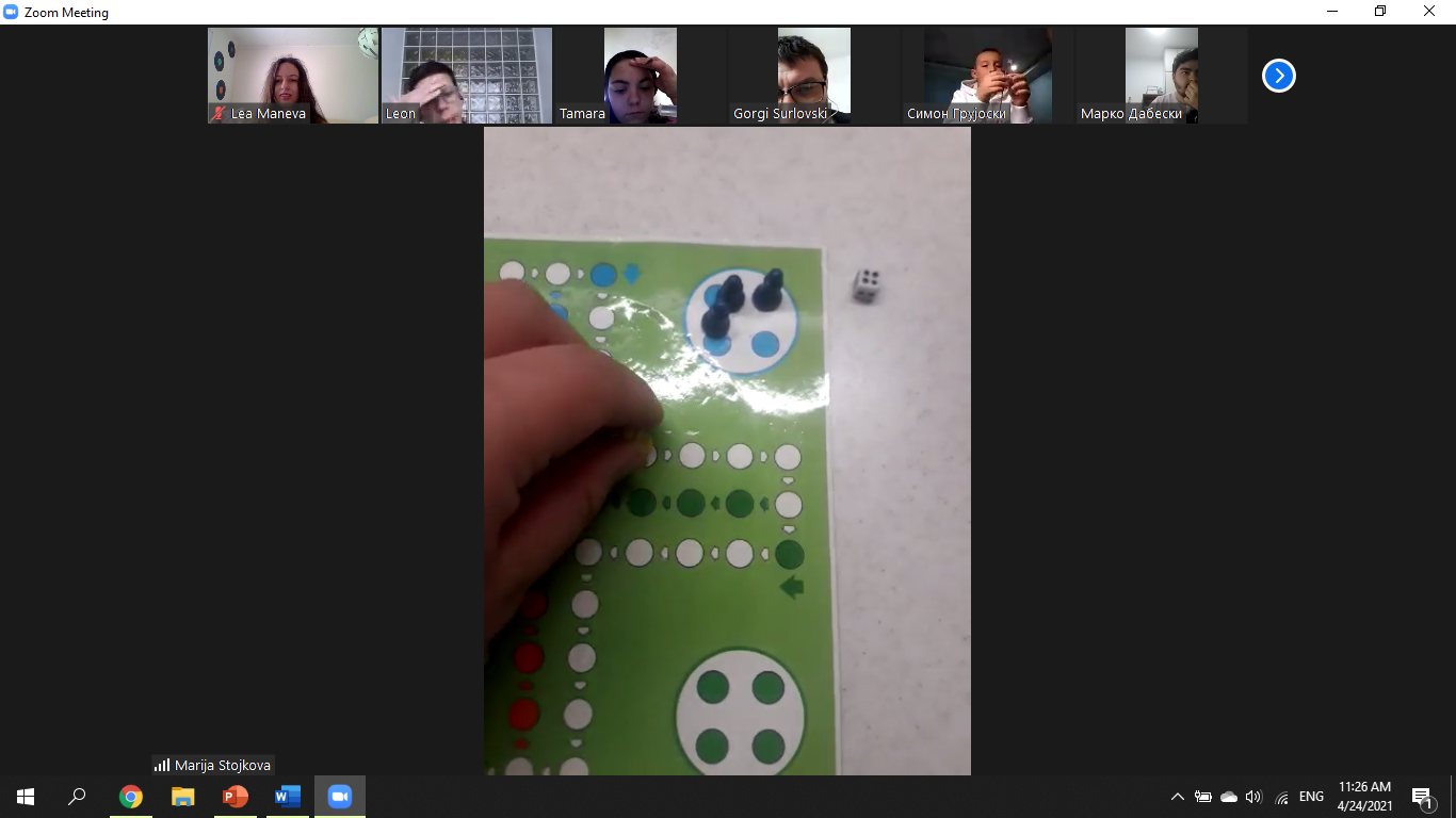 Активноста се реализираше на ден 24 aприл 2021 година со цел дружба, забава на учесниците а најважно, запознавање со поимот и важноста на тимот. Се пееја песни и се играа 3 друштвени игри а импресиите кои учесниците ги кажуваа на крајот на активноста, беа поттик за волонтерите да продолжат со овие активности.