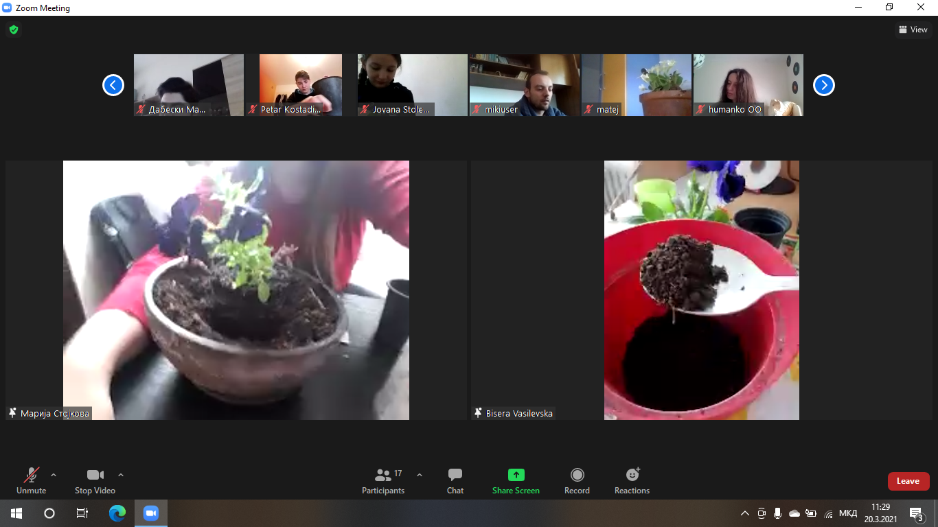 Активноста се реализираше на ден 20.03.2021 година со цел запознавање со процесот на садење и грижа за растение и развивање на чувство на одговорност кон растението кај целната група. Сето тоа преку меѓусебна забава и дружење.