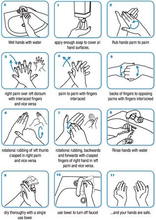 Да се мијат рацете по секој контакт со заболено лице или по контакт со предмети од нивната непосредна околина. Исто така, да се мијат рацете пред и по подготвување на храна, пред јадење, после употреба на тоалетот. Ако рацете не се видливо извалкани, може да се употреби дезинфекциско средство со алкохолна основа за бришење на раце. Да се мијат рацете користејќи сапун и вода кога рацете се видливо извалкани.