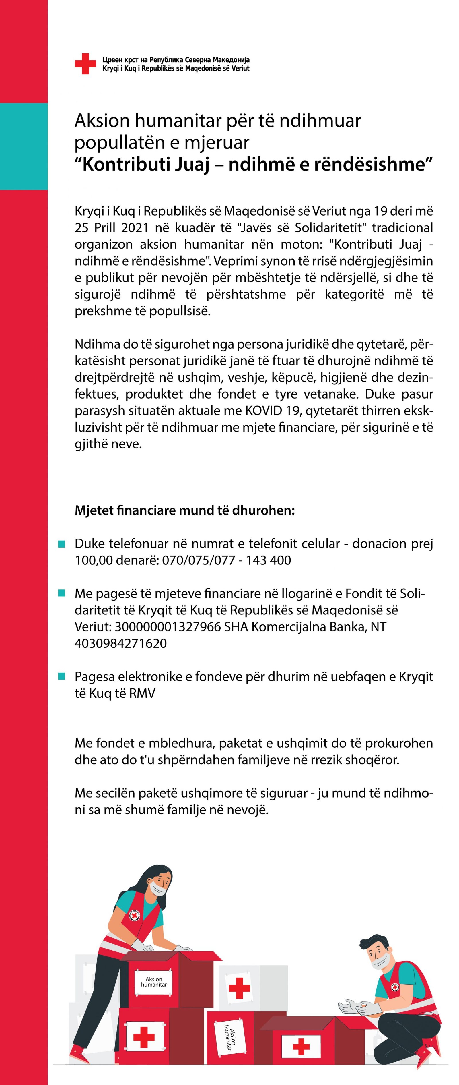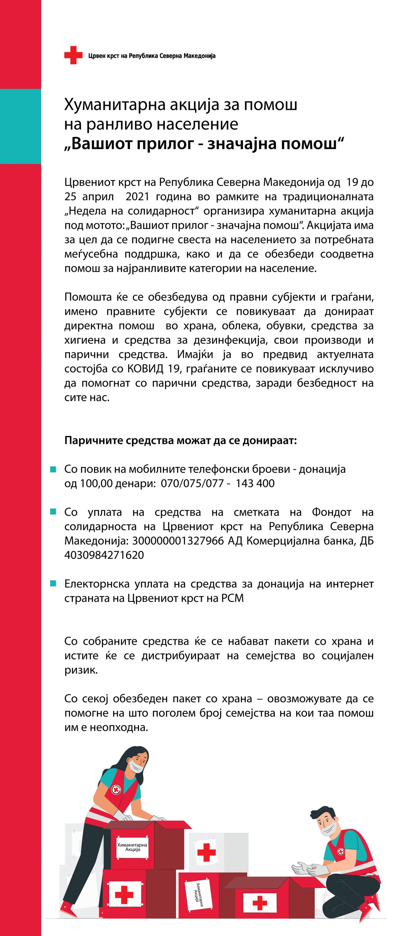 април 26, 2021Хуманитарна акција за помош на ранливо население „Вашиот прилог – значајна помош“ < врати се назад