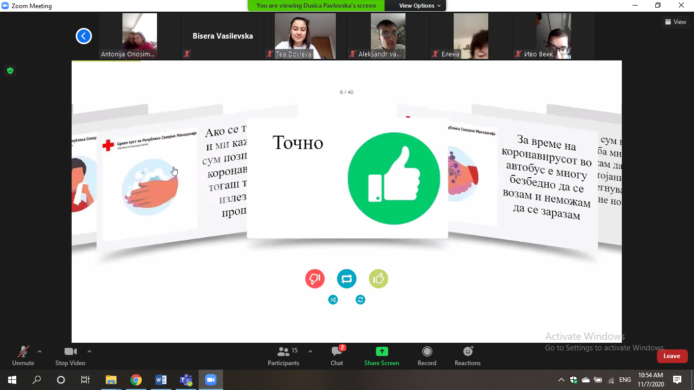 На ден 07 ноември 2020 година со почеток од 10:00 часот преку електронската платформа – ZOOM се реализираше активност на проектот Хуманко на Клуб на млади на Црвен крст на РСМ-ОО Карпош.