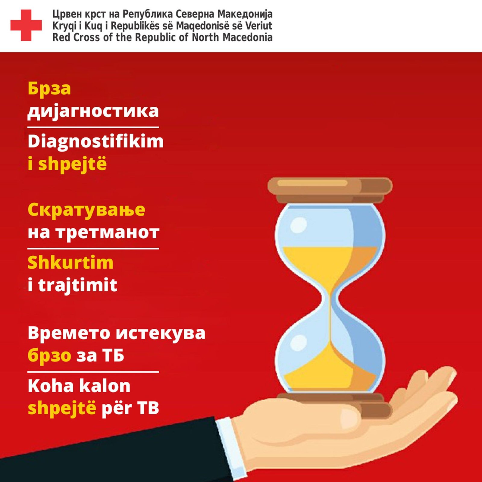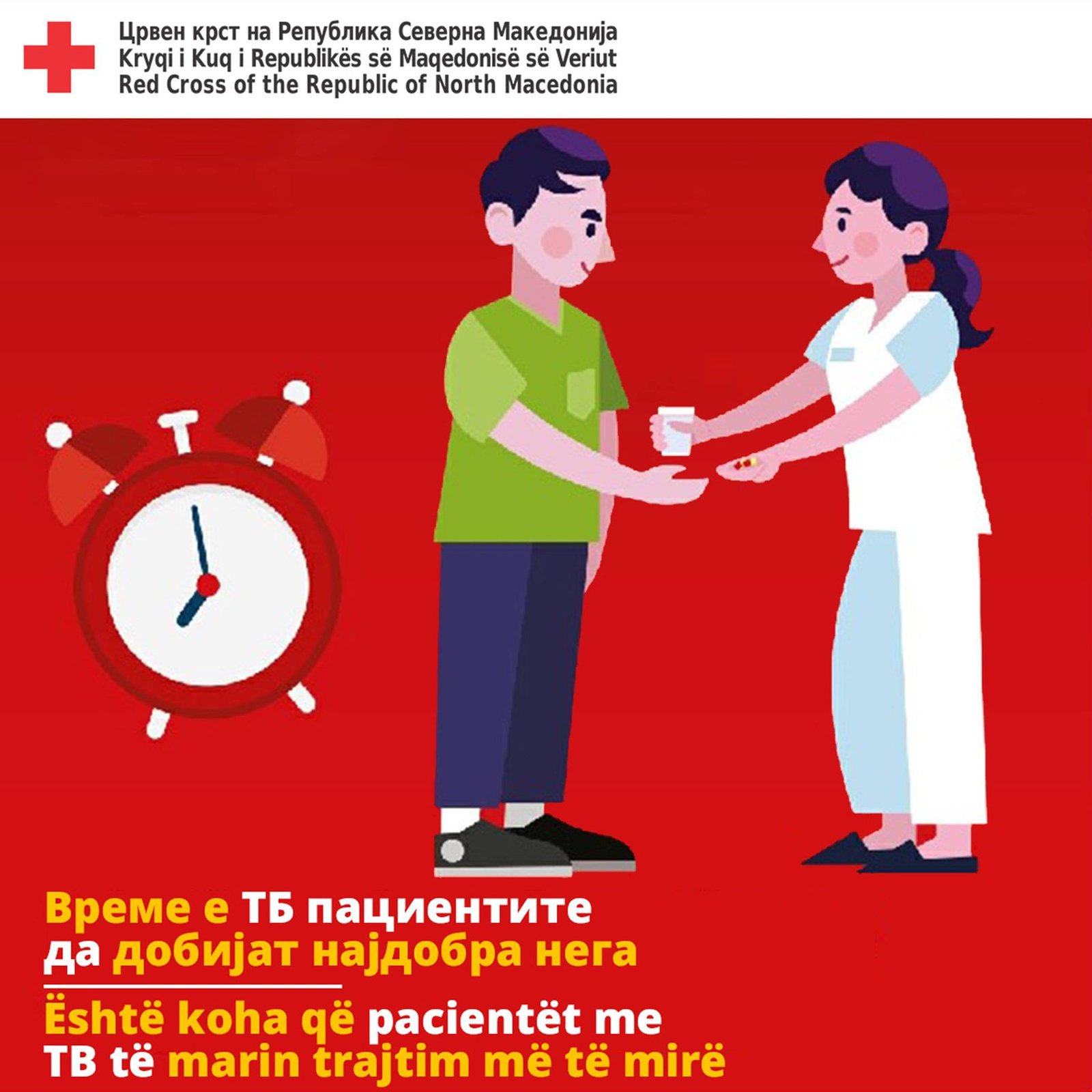 Црвениот крст на Република Северна Македонија во периодот од 14 до 21 Септември ја одбележува Неделата на на борба против туберкулозата под мотото: Време е за свет без туберкулоза! со цел подигнување на јавната свест за важноста на општото здравје, социјалното и економско влијание на туберкулозата и поттикнување и забрзување на напорите за ставање крај на глобалната епидемија на туберкулозата..