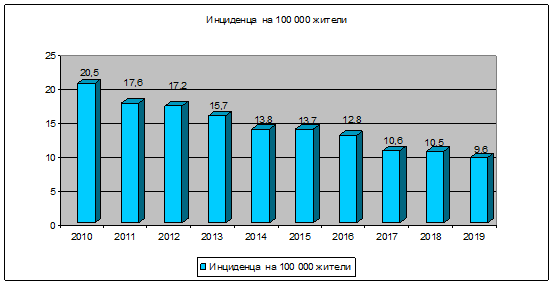 Инциденца на 100 000 жители во Република Северна Македонија 2010-2019 година