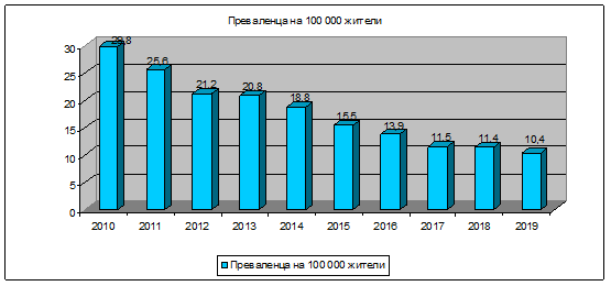 Преваленца на 100 000 жители во Република Северна Македонија 2010-2019 година