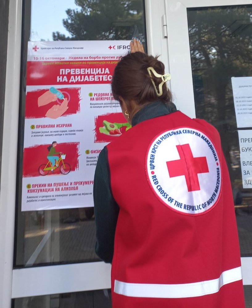 Во рамките на активностите за одбележување на Неделата на борба против шеќерна болест под мотото „Здрави животни навики и дијабетот“ во периодот од 12 до 27 октовмри 2022 година во Црвен крст на Република Северна Македнија-Општинска организација Карпош се спроведоа 18 превентивни едукации со кои беа опфатени 354 ученици од осмите и деветите одделенија од основното училиште “Вера Циривири Трена”- Карпош и основното училиште “Дрита” во село Рашче – Општина Сарај. По една акција акција за мерење крвен притисок и ниво на шеќер во крвта се реализира во Здруженијата на пензионери “Тафталиџе” и “Ѓорче Петров” со кои беа опфатени 51 лице – пензионери.