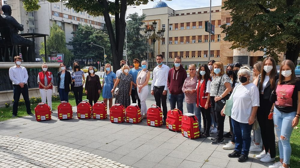 Како дел од планираните активности, а во насока на зачувување на здравјето и безбедноста на учениците и наставниот кадар, донирани се наменски опремени ранци со санитетски материјали и останата опрема за укажување прва помош за 31 средно училиште на територија на градот Скопје. Во секое училиште ќе биде обучена екипа за правилно и навремено укажување на прва помош, а едукациите ќе бидат контунирани во текот на целата година. Обуката ќе се реализира во координација со Општинската организација на Црвен крст на чија територија се наоѓа училиштето. На територијата на општините Карпош, Ѓорче Петров и Сарај беа опфатни вкупно 9 средни училишта од кои 7 државни училишта: Гимназиите Орце Николов, Никола Карев, Георги Димитров, Кочо Рацин и Сарај, угостителско училиште “Лазар Танев, градежно училиште Здравко Цветовски, и две приватни гимназиски училишта “Нова” и “Јахја Кемал” -Скопје