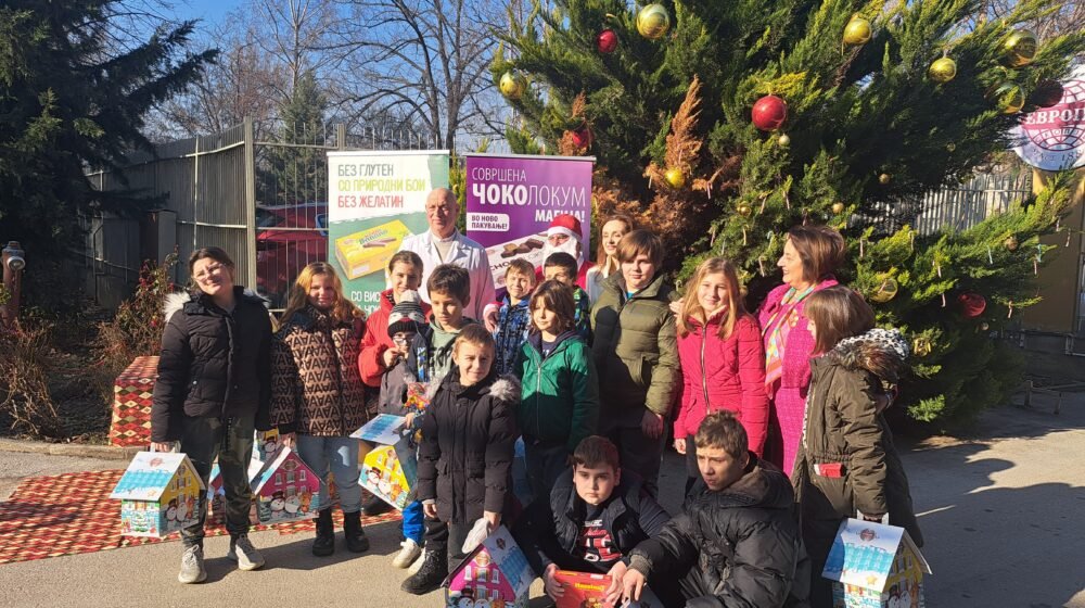 Вработените во фабриката АД „ЕВРОПА“ топло и љубезно ги пречекаа дечињата и ги прошетаа низ погоните каде се подготвуваат бонбоните, чоколадите и вафлите, а на крајот од прошетката од страна на Дедо Мраз на сите деца им беа поделени новогодишни пакетчиња.