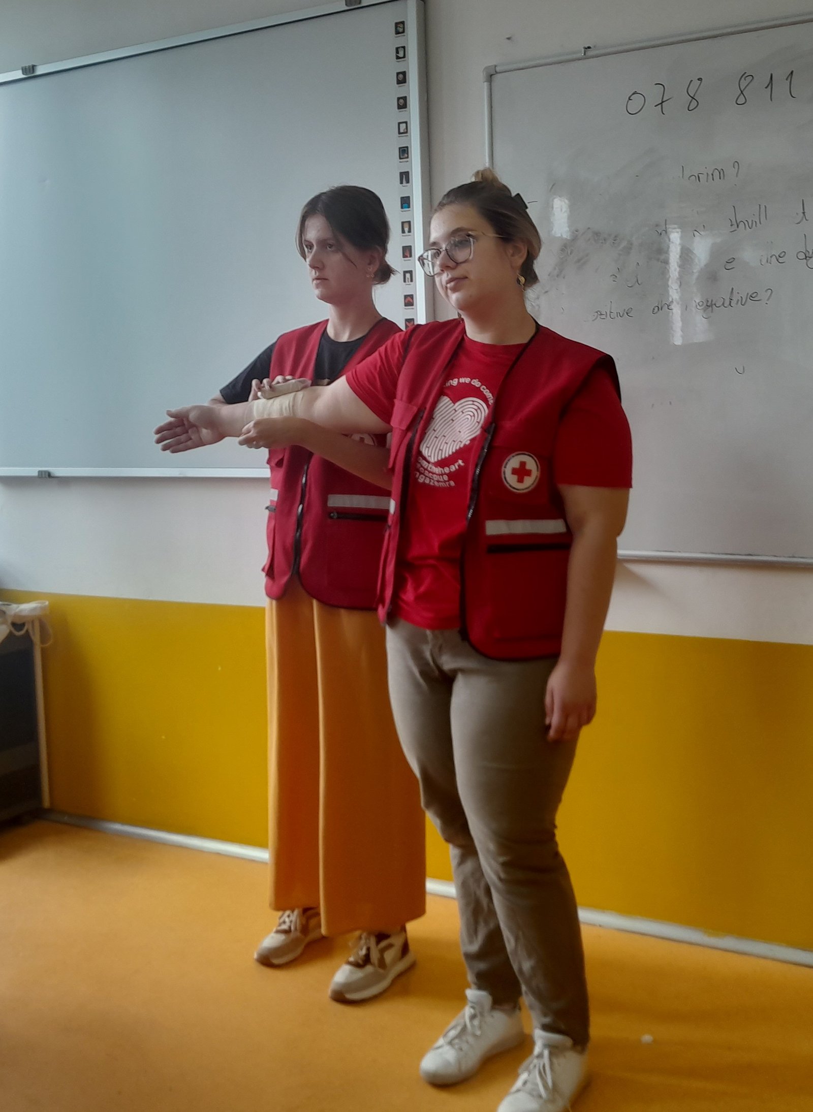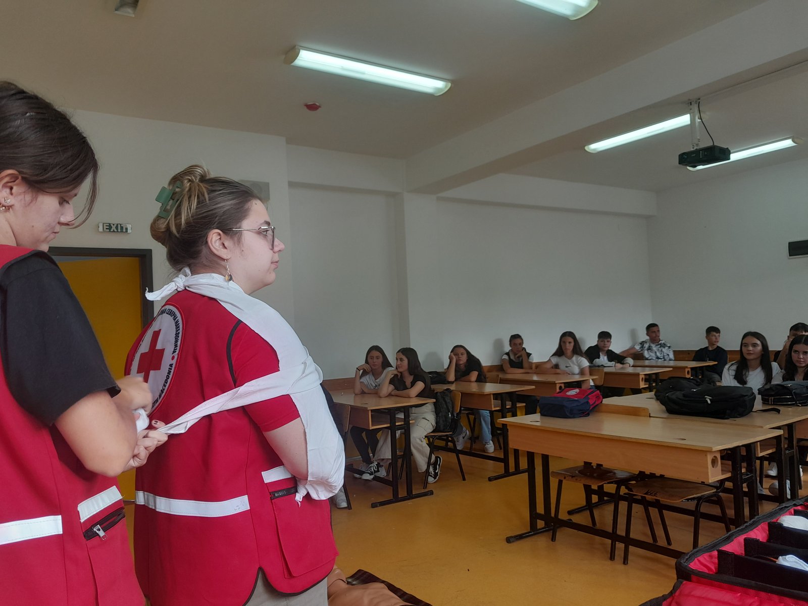 Црвен крст на Република Северна Македонија – Општинска организација Карпош во текот на месец септември 2023 година започна со продолжување на кампањата за ширење на знаењата и вештините од областа на првата помош помеѓу младата популација. Тројца обучени волонтери – млади демонстратори по прва помош од Клубот на млади спроведоа 4 едукативни предавања за 90 лица, ученици од прва и втора година од средното училиште СУГС „Сарај“ – Скопје. Едукациите поминаа во интерактивна атмосфера со вежби, прашања и куса дискусија.