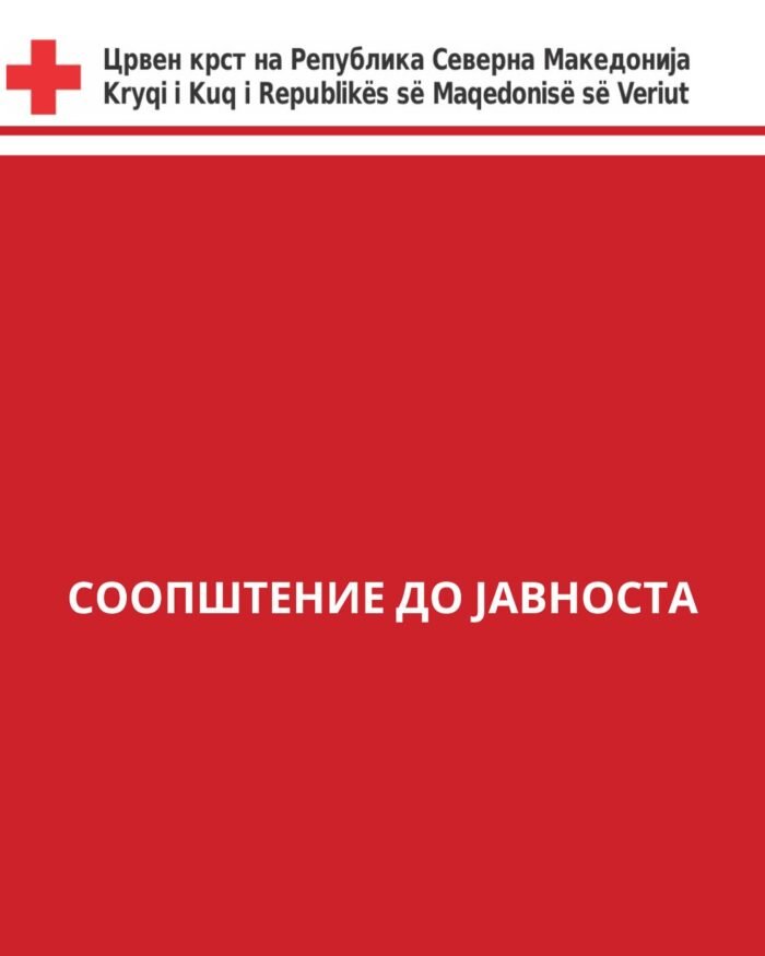 Изразувајќи сочувство со болката на семејствата на настраданите и повредените, сакаме да ве информираме дека Црвениот крст на РСМ донесе одлука, Свечената академија по повод одбележувањето на 80 – годишнината од формирањето на Црвениот крст на РСМ која требаше да се одржи на 18 март 2025 година под покровителство на претседателката на РСМ Гордана Сијлјановска Давкова ќе се одложи на неопределен период.
