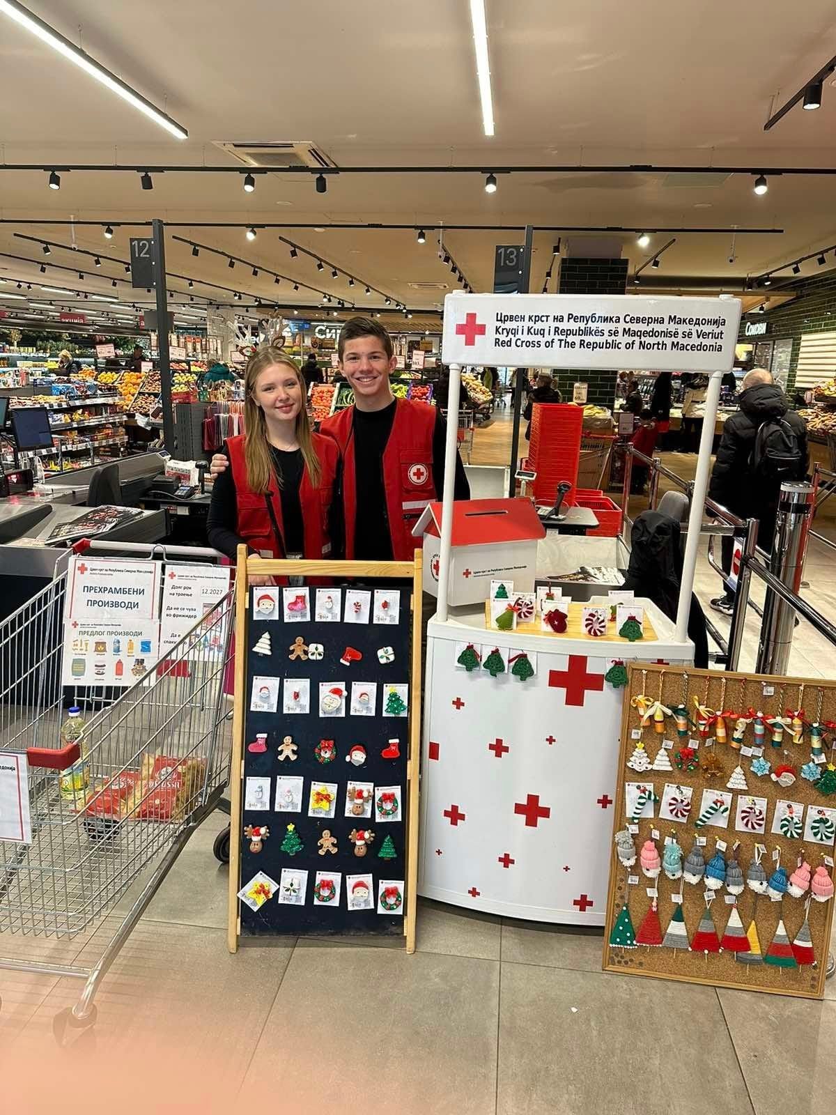 Клубот на млади на Црвен крст на РСМ – Општинска организација Карпош во периодот од 28 до 30 декември 2023 година во маркетот Веро – објект Тафталиџе ја спроведе традиционалната новогодишна хуманитарна акција. Акцијата се спроведе три дена во периодот од 11 до 20 часот преку поставување на штанд со изложени рачни изработки – новогодишни украси и аксесоари на кој беа присутни тимови од два до три волонтери со ротирачки модел во смени. Граѓаните – посетители на штандот имаа можност да донираат прехрамбени производи, новогодишни пакетчиња и парични средства, а за возврат на донацијата да добијат рачна изработка. На акцијата и претходеа четири работилници на кои беа изработени 550 изработки.