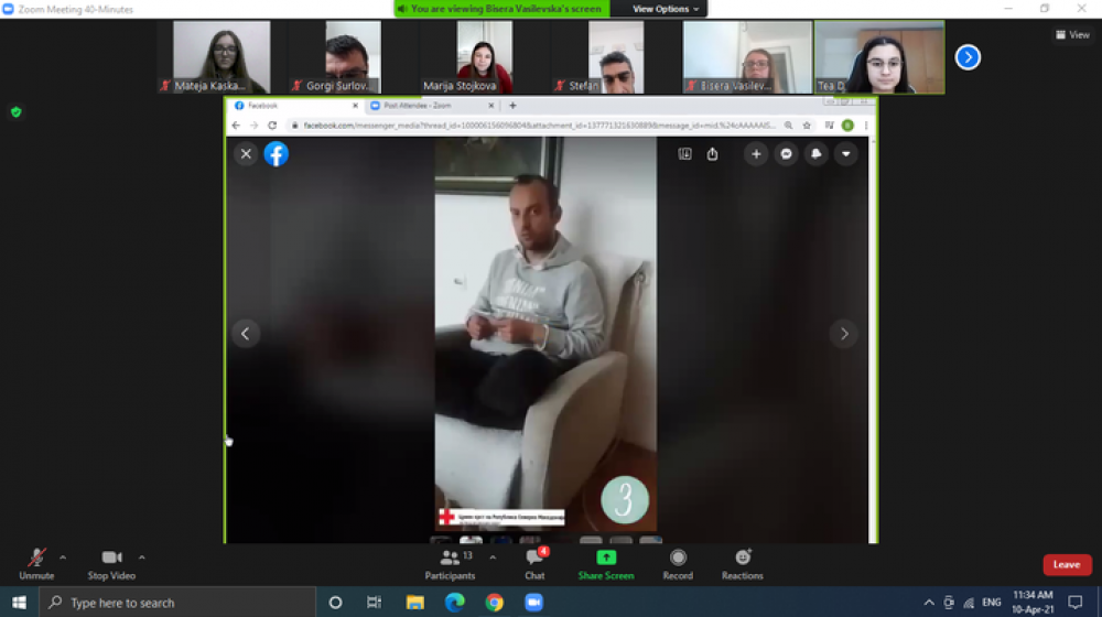 На активноста која беше реализирана на платформата за на далечина ZOOM беа присутни вкупно 14 учесници од целната група и волонтери од Клубот на млади на ЦКРСМ – ОО Карпош.