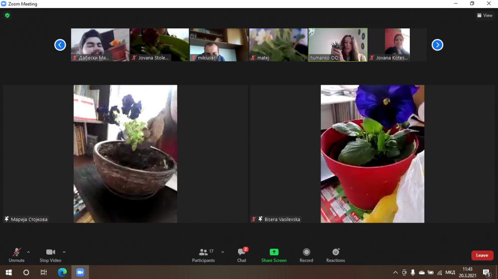 Активноста се реализираше на ден 20.03.2021 година со цел запознавање со процесот на садење и грижа за растение и развивање на чувство на одговорност кон растението кај целната група. Сето тоа преку меѓусебна забава и дружење.