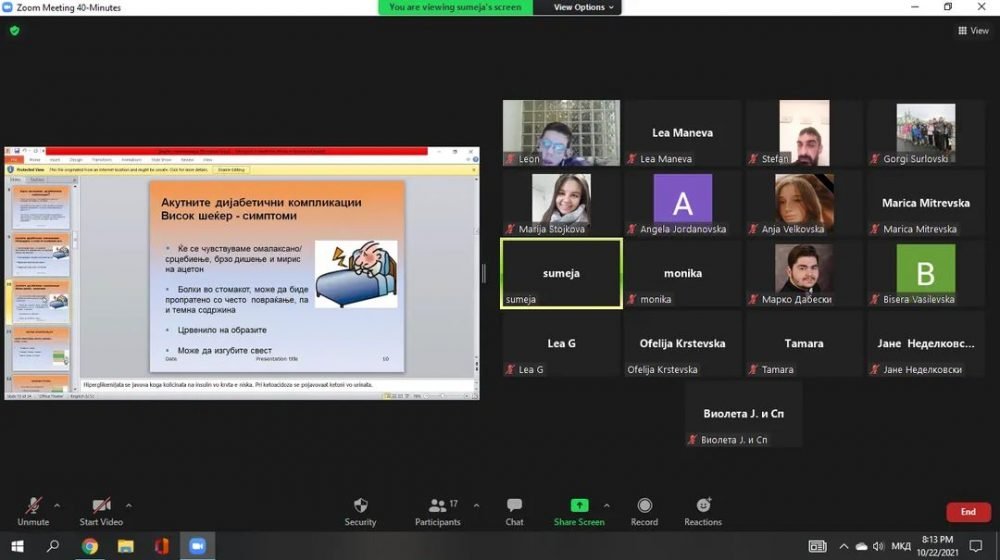 Со цел подигнување на свеста од ризиците и превенција од шеќерна болест, на 22 Октовмри 2021 година од страна на лекар се реализира онлајн едукацијата за 23 слушатели-волонтери и членови на Клубот на млади од Општинската организација Карпош.