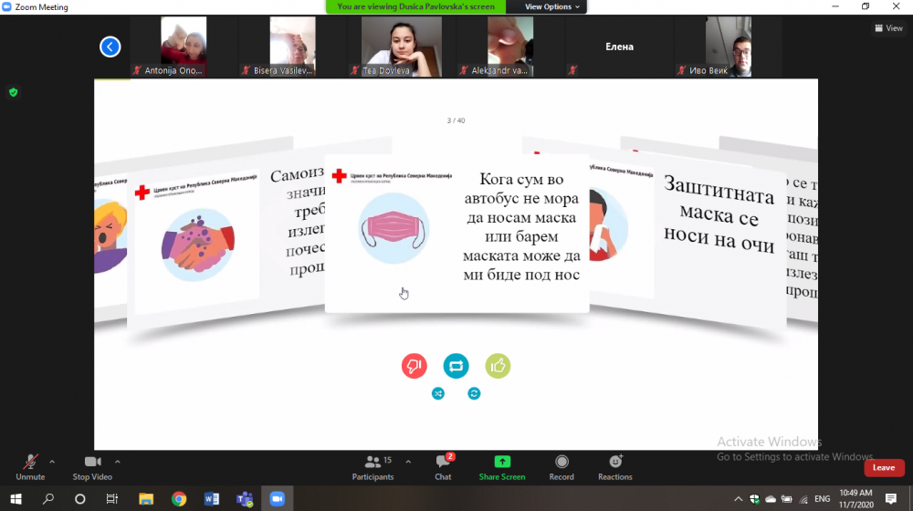 На ден 07 ноември 2020 година со почеток од 10:00 часот преку електронската платформа – ZOOM се реализираше активност на проектот Хуманко на Клуб на млади на Црвен крст на РСМ-ОО Карпош.