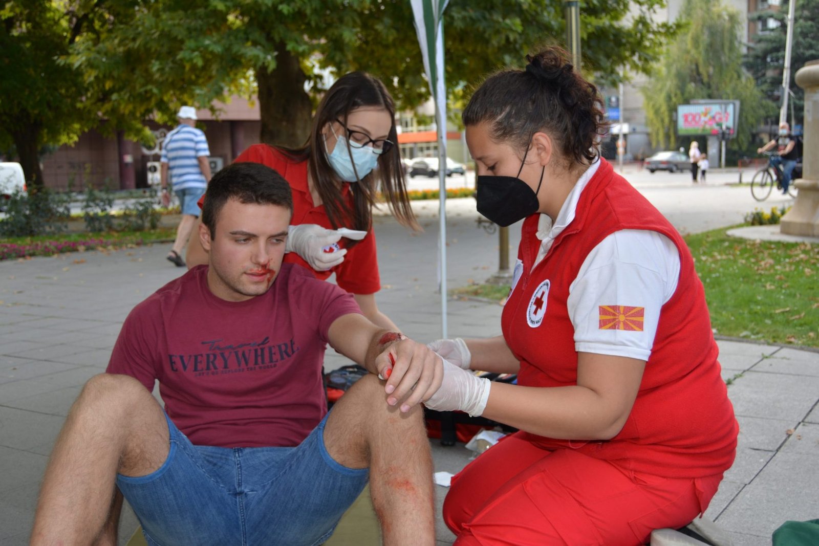 На самиот настан на два поставени пункта преку симулација на повредени лица, случајните минувачи имаа можност да ги проследат демонстрациите на укажување на прва помош од страна на едуцирани волонтери на Црвениот крст и воедно да добијат информативни флаер со содржини од прва помош.