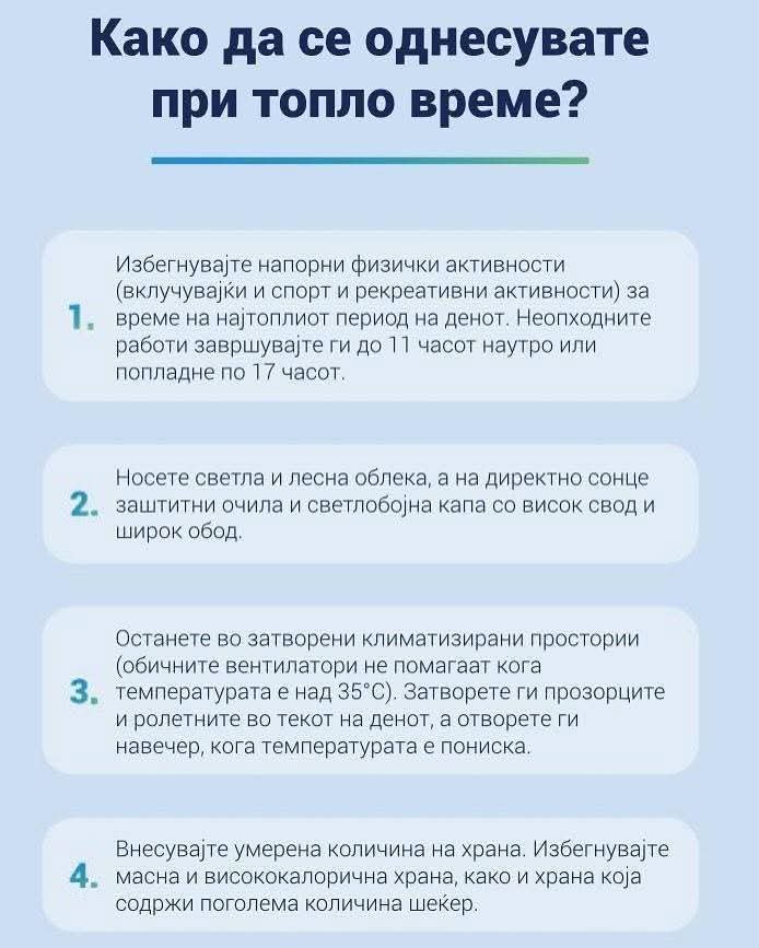 Општи препораки за заштита на населението од топлотни бранови