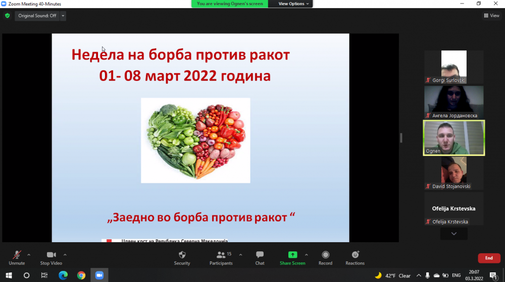 Во рамките на здравствено превентивната дејност, Црвениот крст на Република Северна Македонија-Општинска организација Карпош во периодот од 1-ви до 8-ми март 2022 година со свои активности ја одбележаа Неделата на борба против ракот под мотото ,,Заедно во борба против ракот”.