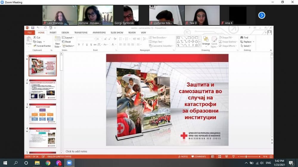 Во периодот од 23 јануари до 03 февруари 2021 година, преку ZOOM платформа, обучен волонтер од Општинската организација Карпош реализираше 4 онлјан сесии за претстаување на Проекот ,,Безбедни училишта и градинки” поддржан од Еразмус+ и можностите за обука за заштита и самозаштита во случај на катастрофи на кои беа опфатени вкупно 117 слушатели.