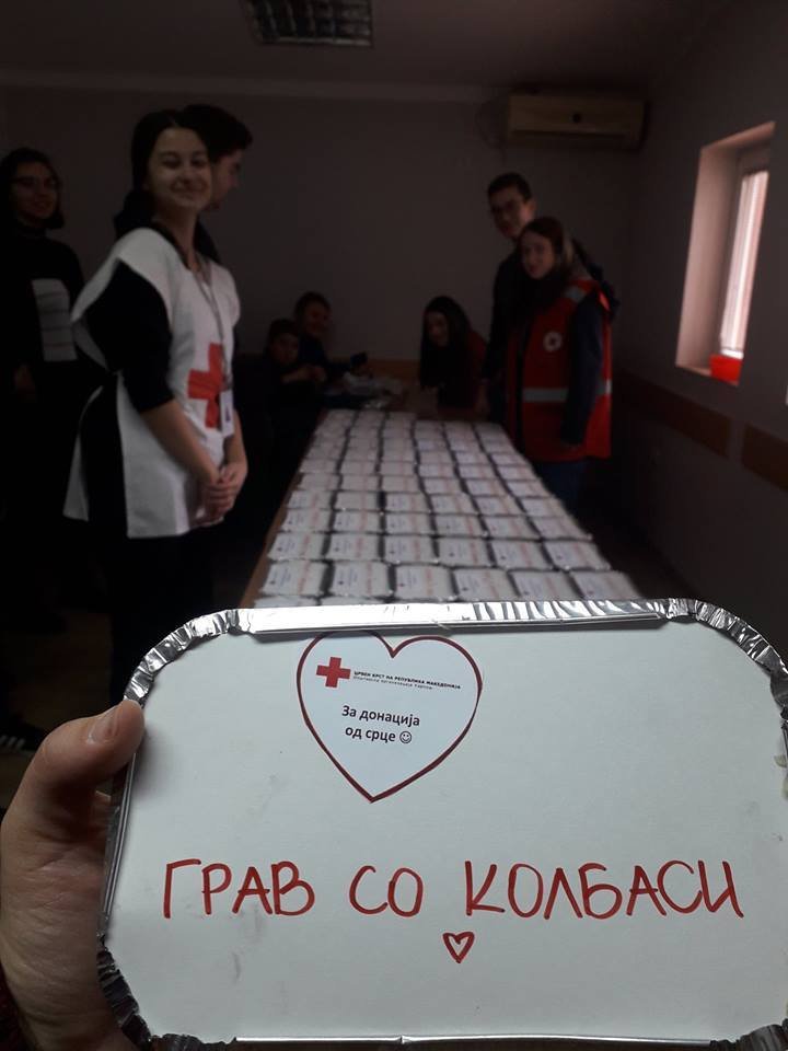 Во донирањето и подготовката на 100 еднодневни оброци се вклучија 15 волонтери од Клубот на млади на Црвен крст на Република Македонија и нивните родителите, а со 60 хуманитарни пакети се вклучија и учениците од Основното училиште ,,Вера Циривири Трена,,. Целата храна заедно со иницијаторите на оваа акција со патролно возило беше поделена на лицата во социјален ризик.